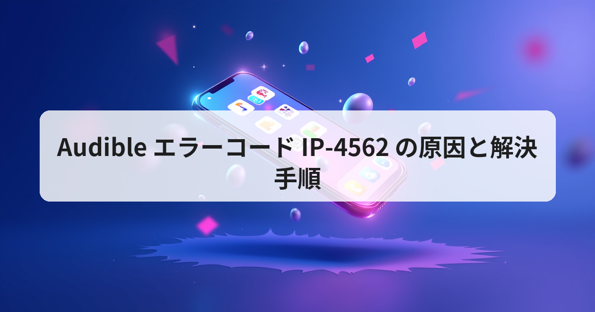 [^1]: Reddit ユーザー投稿「any ideas error code ip4562」(2025年12月) – https://www.reddit.com/r/audible/comments/1rzkoib/any_ideas_error_code_ip4562/(閲覧日: 2026‑04‑19)。