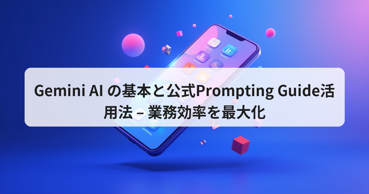 Gemini は Google が提供する大規模言語モデル(LLM)+マルチモーダル機能を備えた生成 AI です。2023 年に公開された 「Prompt‑Engineering Guide for Gemini」(通称 Gen AI Tips)では、プロンプトの設計原則が体系化されており、これを活用することで出力品質と業務効率が実証的に向上します。