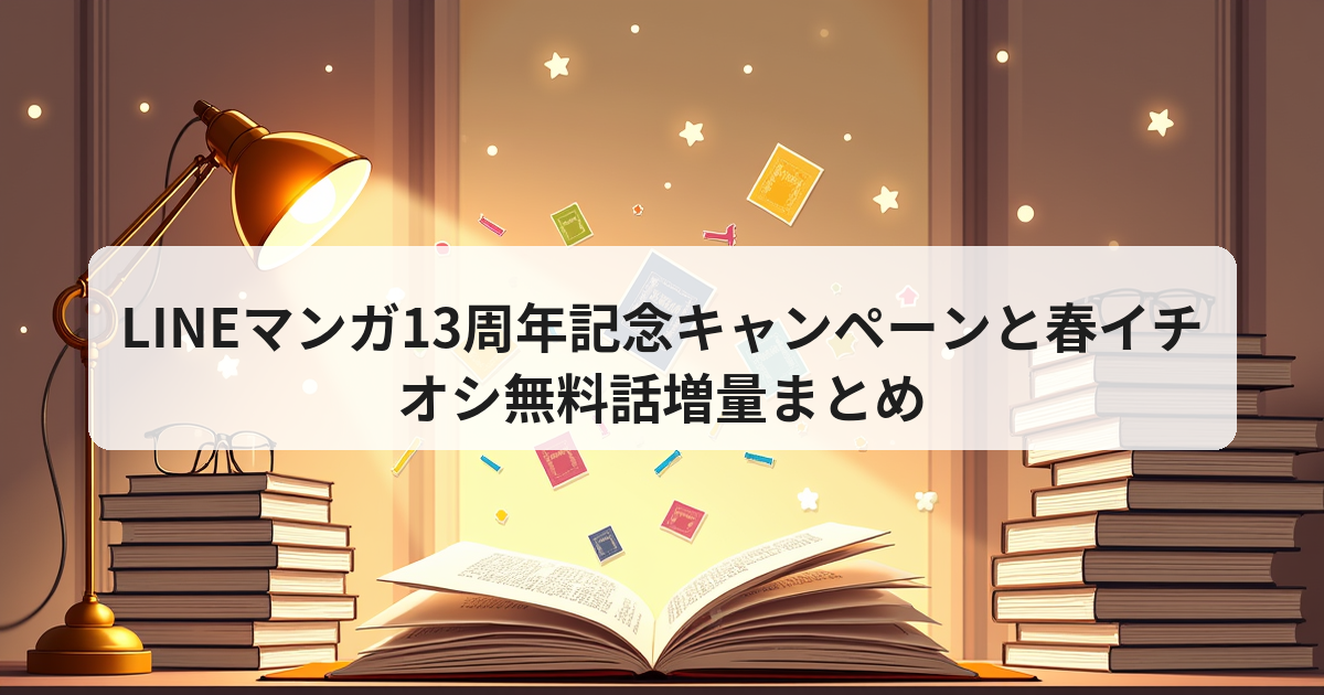 2026年4月9日(木)にサービス開始13周年を迎える LINEマンガ は、公式プレスリリース(PR TIMES 2026/04/09)に基づき「13周年記念キャンペーン」を実施中です。期間中に利用できる主な特典は以下の通りです。