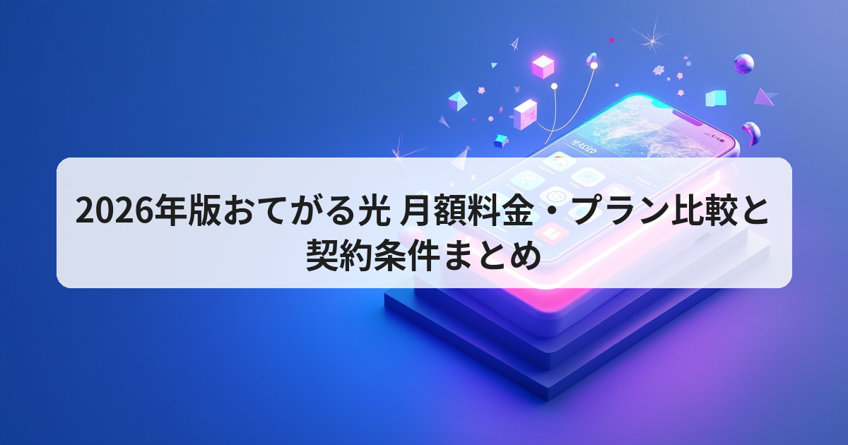 インターネット回線を選ぶ際、「月額料金」+「縛りの有無」+「速度・エリア」 の3要素が最も重要です。本稿では、2024 年にサービス開始した おてがる光 を 2026 年 4 月時点の最新データ に基づき、主要キャリア(NURO 光・au ひかり・ドコモ光・ソフトバンク光)と比較します。