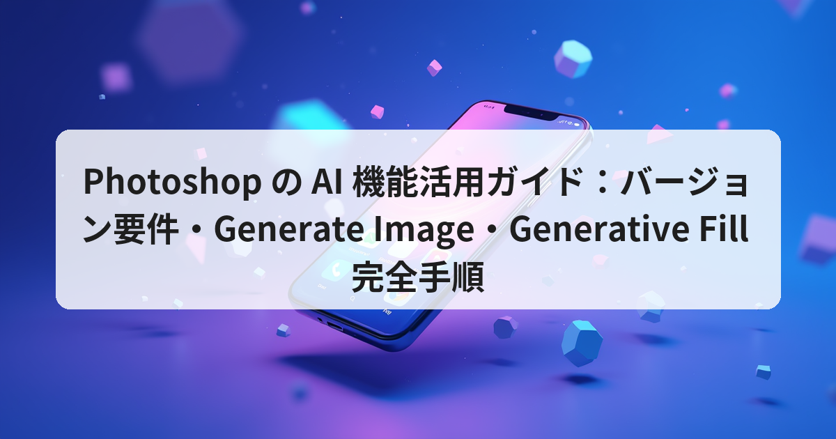 - Photoshop (Creative Cloud) 2024 年以降 が必須です。Adobe は Firefly エンジンを最新版に統合しており、旧バージョンではサーバー認証が通らず AI 機能は使用できません。