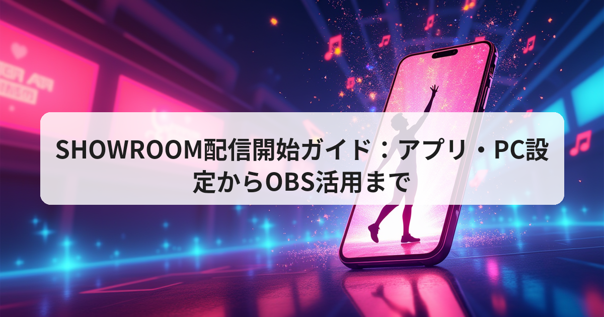 - 本格配信は OBS Studio + SHOWROOM 公式プラグイン を組み合わせ、RTMP URL とストリームキーを正しく設定するだけで高品質ライブが実現できる。